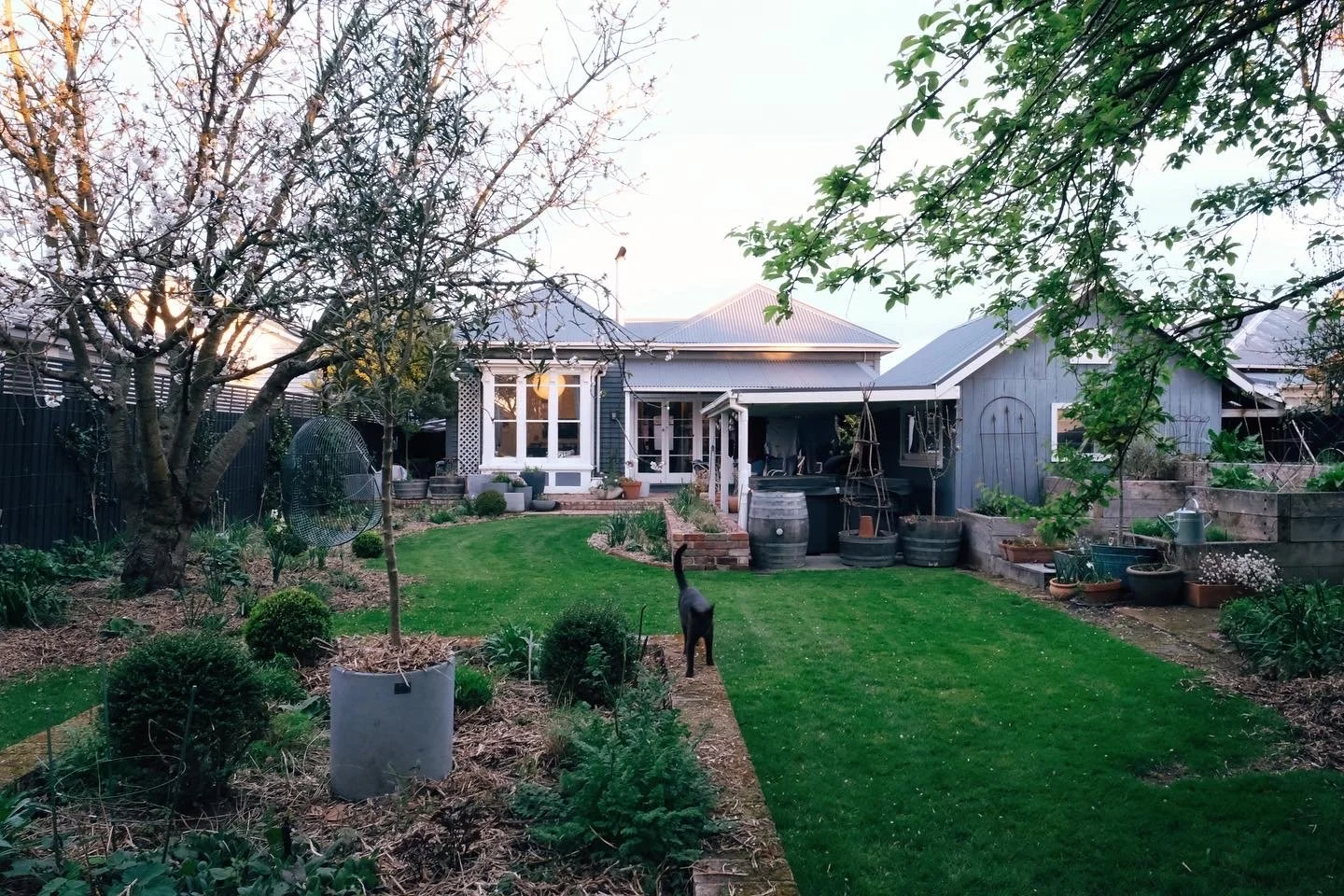 The shadowy end of the garden has a welcome carpet of rambling forget-me-nots. While they were never offered a formal invitation to the property, I find their softness and spread extremely romantic in the crisp brightness of spring. They are punctuated by islands of pink lobelia that seem to have adopted a permanent, self-directed residency in every bright nook and cranny it can find. I have thick fuzzy stands of foxgloves claiming the most awkward of spots, jamming their toes between brick paving and garden edges, but there is no way I can bring myself to pull them out.