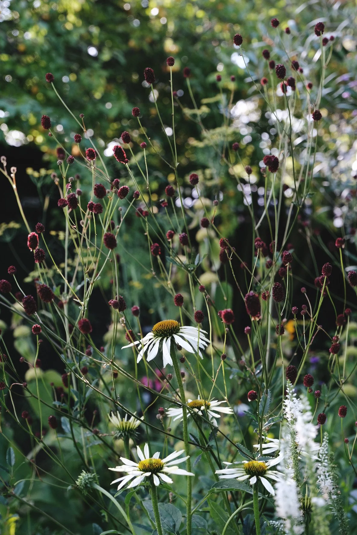 The lovely airy heads of Sanguisorba officinalis (also known as Greater Burnet) mixed with Echinacea purpurea ‘Baby Swan’