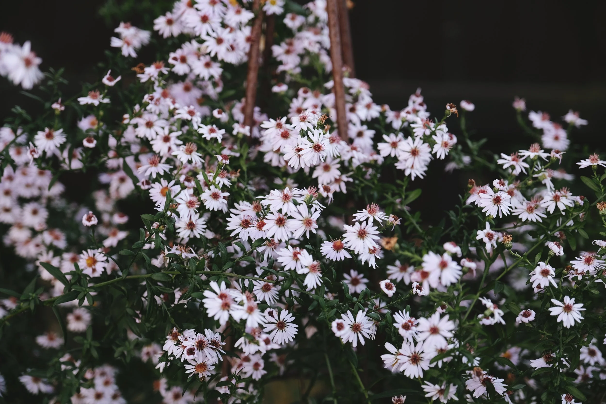With a focus on my summer and autumn perennial display, plants like echinacea, rudbeckia, Japanese anemones, scabiosa, geum and knautia have long been my favourite ways to introduce dots of colour to my beds. Their bright and bold flowers float through the longer stems in the garden and provide beautiful anchors for the eye. Also, my self-seeded crop of asters down in the back bed with their tiny mauve flowers have been most welcome this autumn, even if the plants themselves collapse to the ground at any given chance.