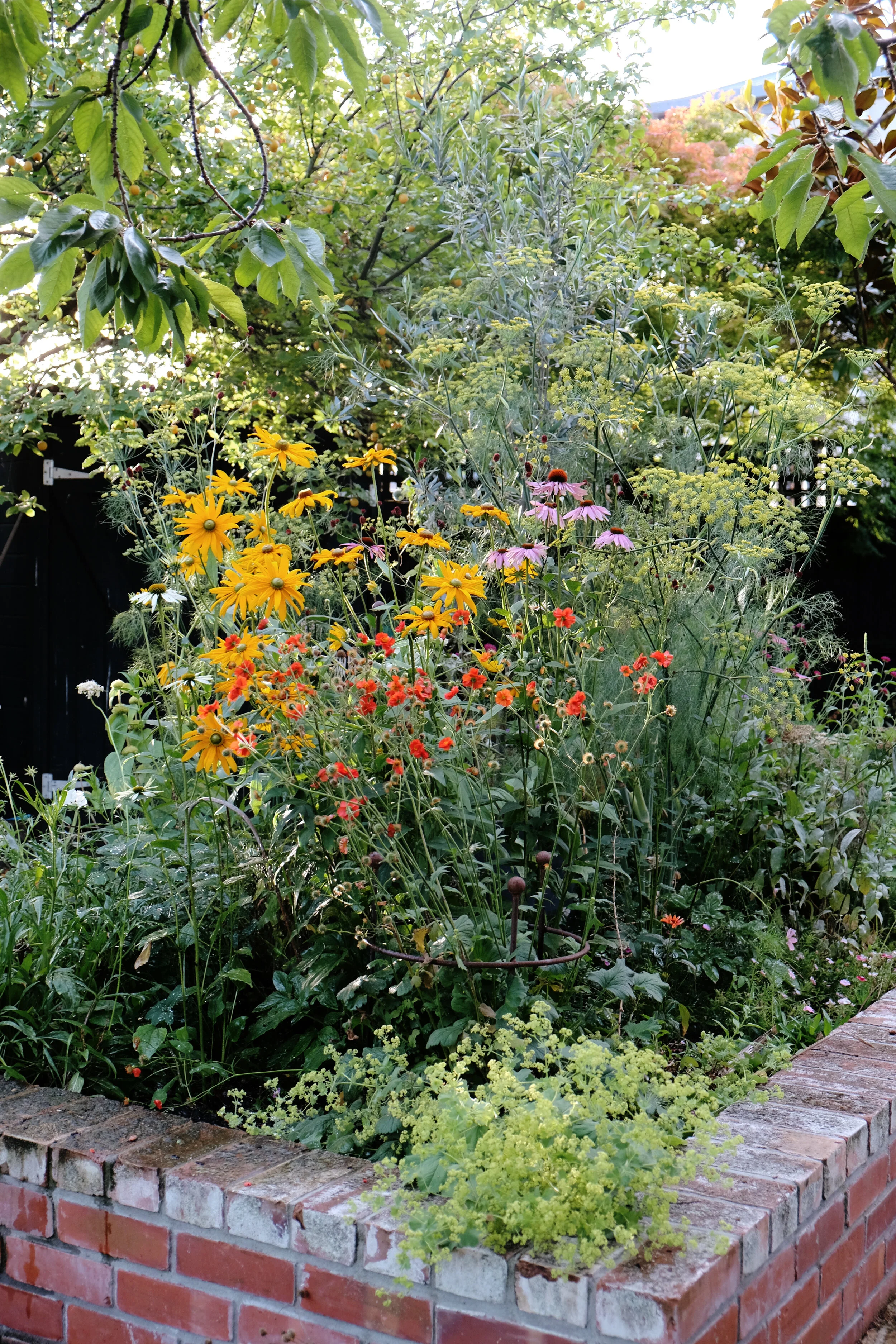 Geum, rudbeckia, echinacea and fennel amongst others - jostling for position depending on their heights.